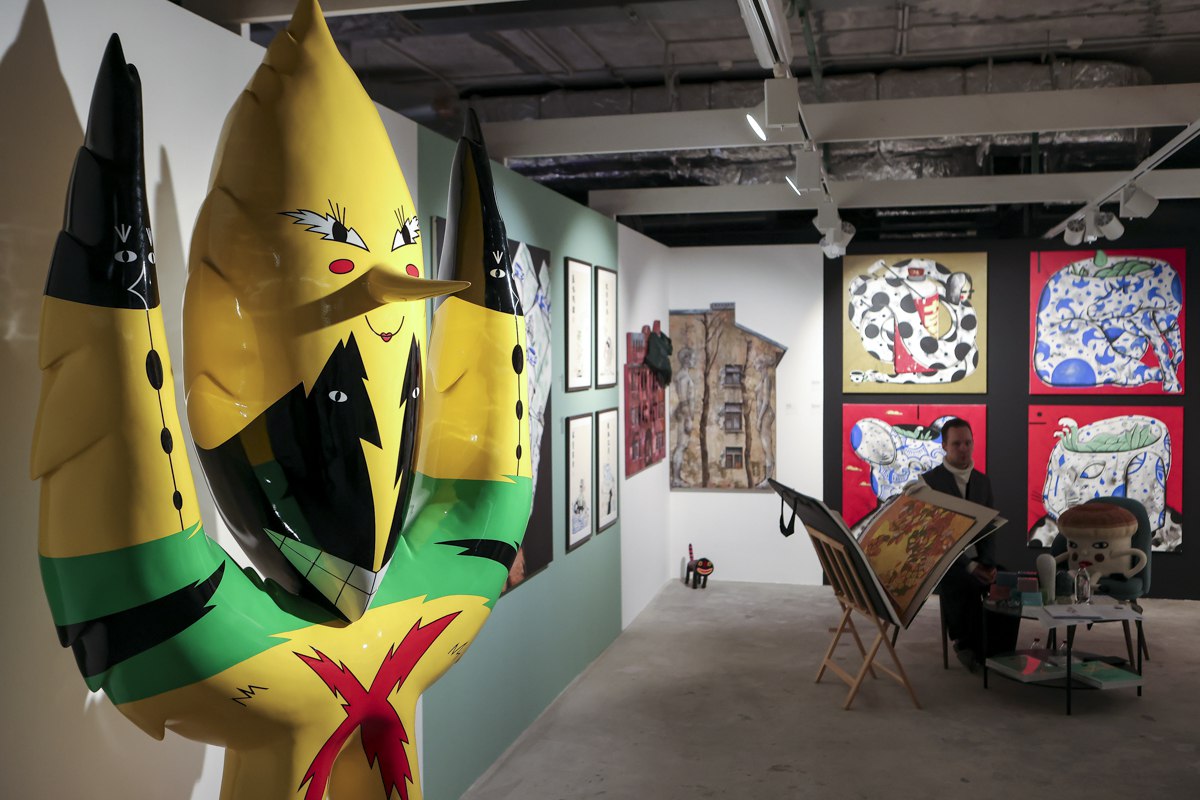 Стенд галереи «БИЗОN» — это метафора дома как пространства двойственности. Восток и Запад встречаются здесь, чтобы напомнить: современное искусство не имеет границ. Его уже успел посетить знаменитый российский уличный художник Владимир Абих. Многим он известен такими работами, как «Зал ожидания» (2020 год), «Поле чудес» (2019 год), проектом «Надпись на стене» и др.