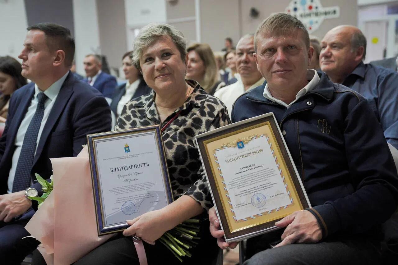 В рамках торжественного приема ко Дню работника транспорта заместитель председателя правительства Астраханской области Ильдар Сайфуллин и министр транспорта и дорожной инфраструктуры региона Алексей Чепяков поздравили специалистов с профессиональным праздником, вручили благодарственные письма минтранса РФ, почетные грамоты губернатора Астраханской области и регионального профильного ведомства.