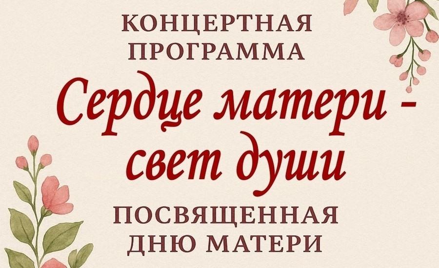 В 13:00 в КЦ «Аврора» состоится праздничный концерт «Сердце матери — свет души». Это будет настоящий подарок для всех мам, наполненный музыкой, стихами и искренними эмоциями. Вход свободный. 6+