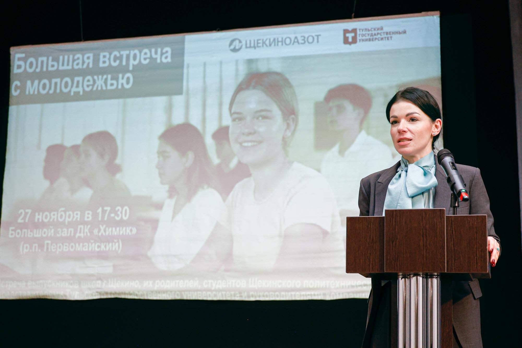 Большая встреча с молодежью - состоялась вчера в большом зале ДК «Химик» в Первомайском поселке у представителей компании «Щекиноазот» и Тульского государственного университета.