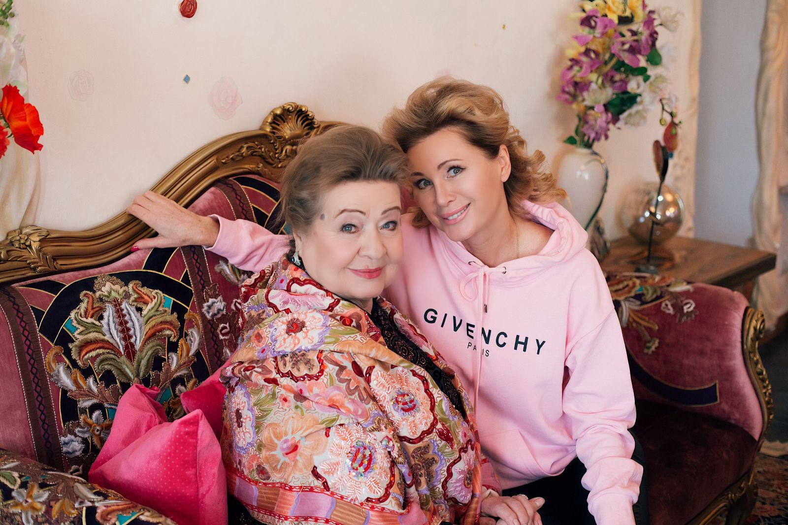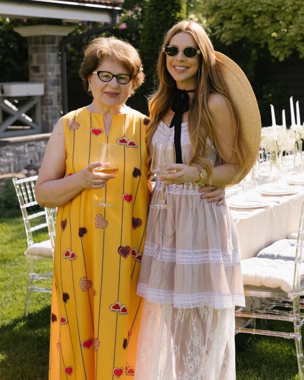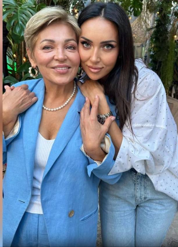 А певица Наталья Подольская и её мама Нина Антоновна позируют с бокалами на фоне роскошного стола, словно готовясь отмечать праздник.