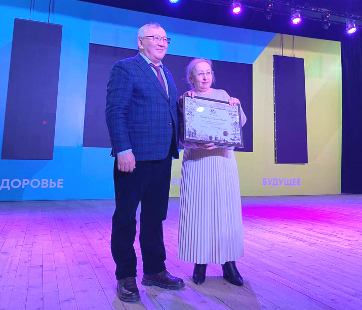 Вручение благодарности РГО Людмиле Шишмаревой (фото - Чимит Урбанова)