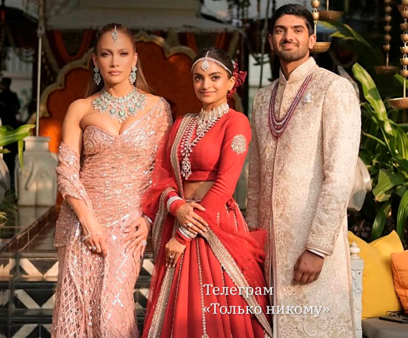 Дженнифер Лопес сегодня подрабатывает на свадьбе индийских миллиардеров. По инсайдерской информации, её гонорар составил минимум 7 миллионов долларов. Фото: ТГ-канал "Только никому..."
