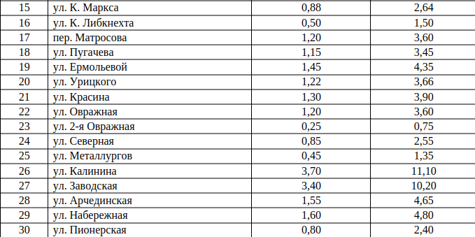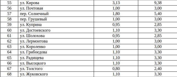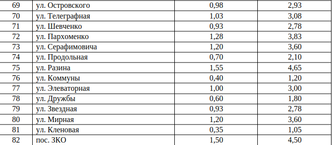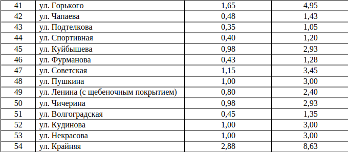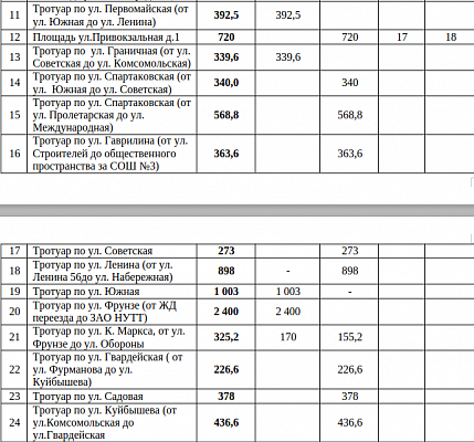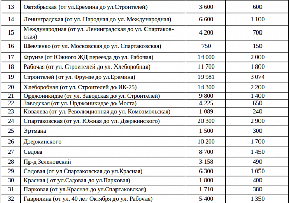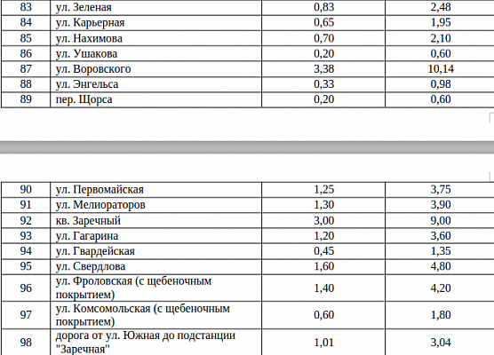 На скриншотах ниже список улиц, где будут осуществлять работы.