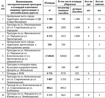 Тротуары и площади, прилегающие к автомобильным дорогам, подлежащие содержанию.