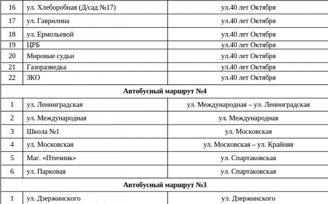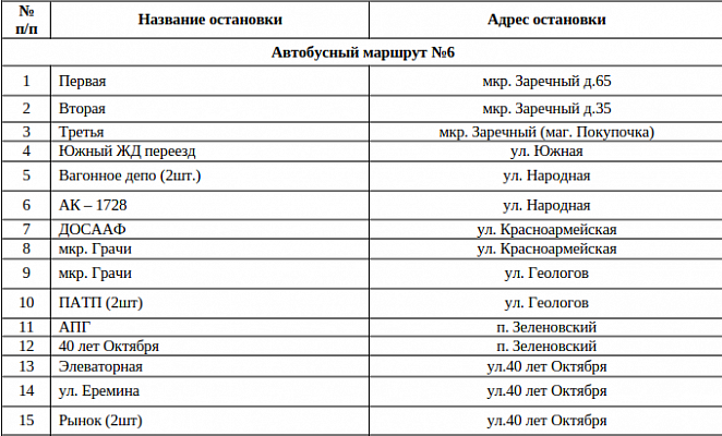 Автобусные остановки, подлежащие уборке в зимний и летний периоды