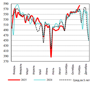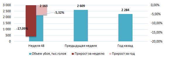 Еженедельный приблизительный объем убоя свиней, тыс. голов