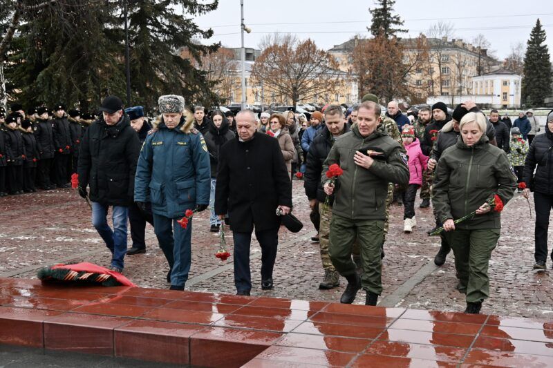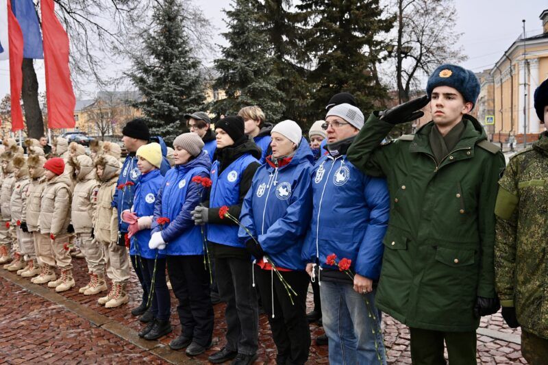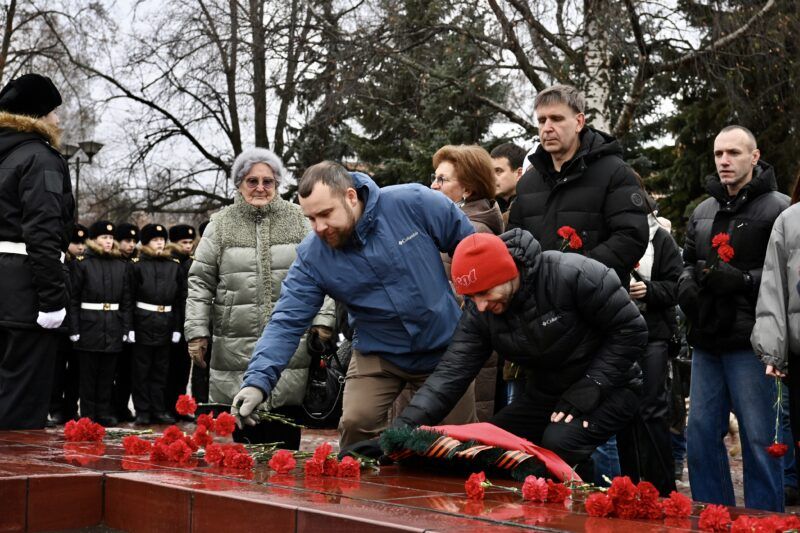 Командиры и бойцы поисковых объединений, представители органов власти и общественники возложили цветы к Вечному огню в Петрозаводске.