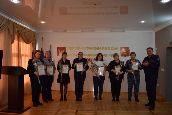 Тепло поздравили женский коллектив ИК-9 с праздником начальник учреждения Дмитрий Трофименко и его заместители.