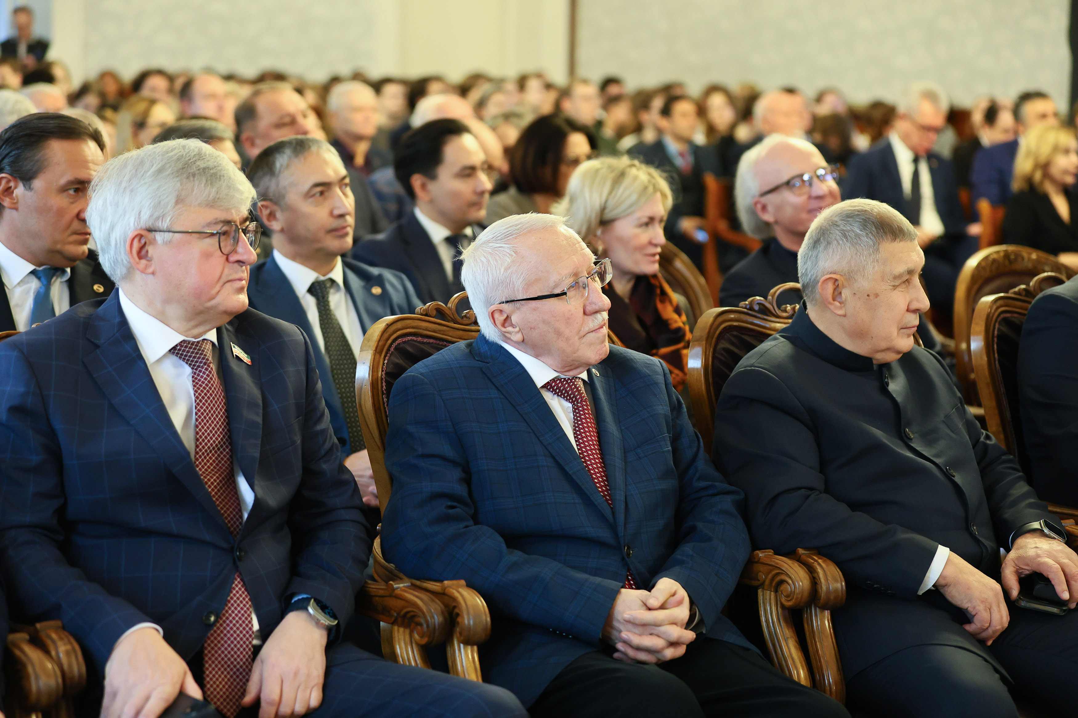 В торжественном мероприятии приняли участие Премьер-министр РТ Алексей Песошин, ректор КФУ Ленар Сафин, президент Академии наук РТ Рифкат Минниханов, а также члены Ученого совета КФУ, представители ведущих научных и образовательных организаций и многие другие.