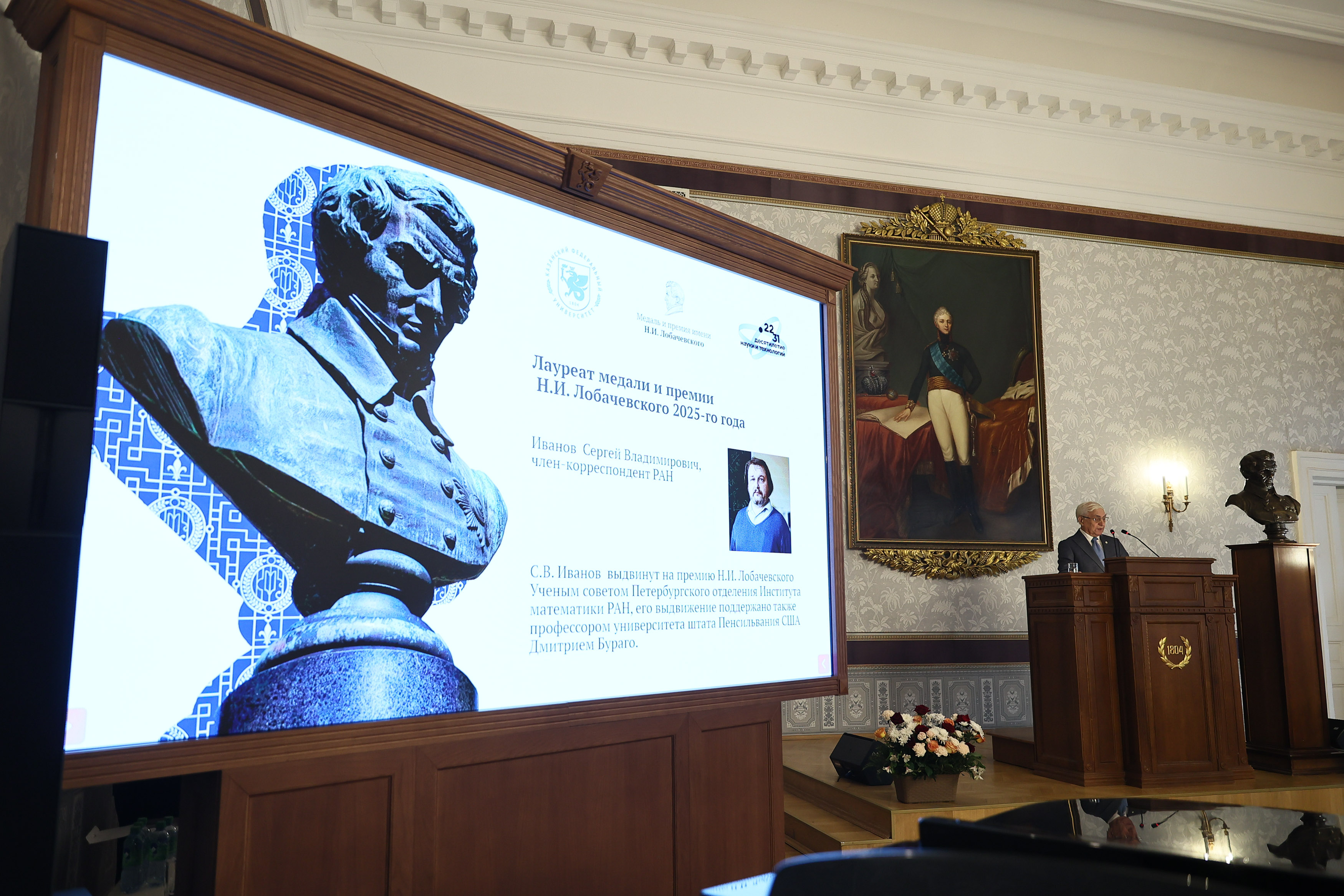 Сегодня, в день рождения великого русского геометра, в Императорском зале Казанского федерального университета прошла церемония награждения лауреата Международной премии и медали им. Н.И. Лобачевского «За выдающиеся работы в области фундаментальной и прикладной математики».