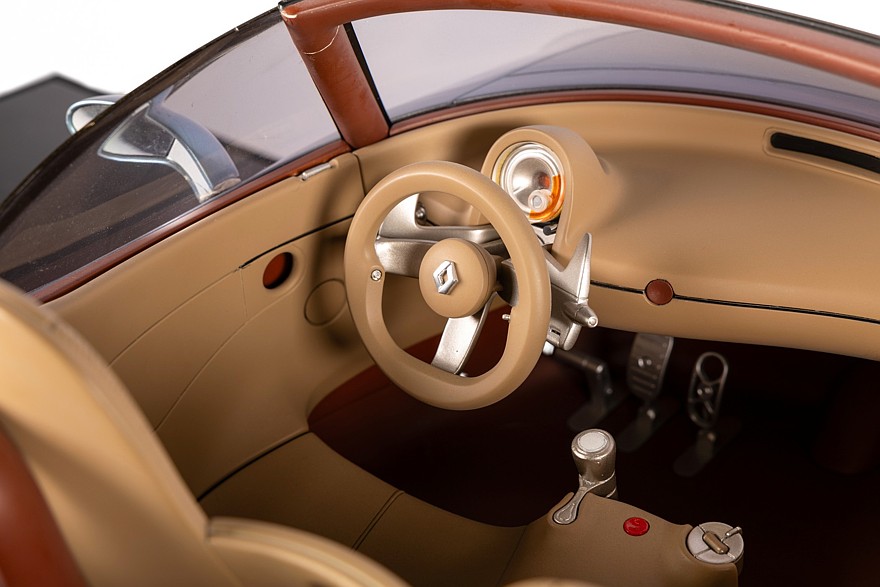 Ещё одна прекрасная масштабная копия прекрасного концепта — родстера Wind с посадочной формулой 2+1, который мог стать французским аналогом Mazda MX-5, но не стал. Вместо родстера в 2010-2013 годах выпускался кургузый двухместный купе-кабриолет Renault Wind, сделанный на базе хэтчбека Renault Twingo второго поколения.