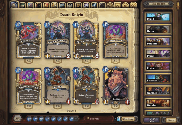 - Вы сможете собрать колоду из карт любых двух классов, используя любые дополнения Стандартного режима