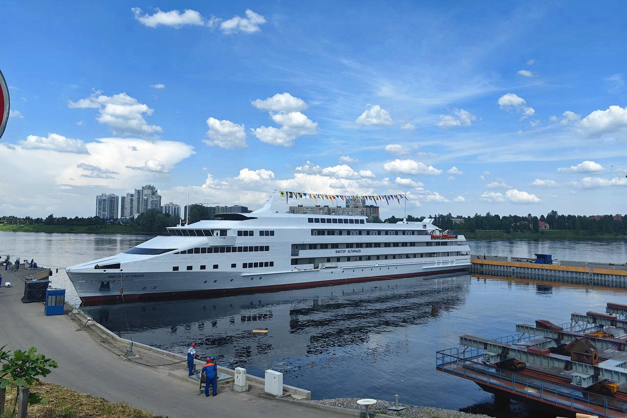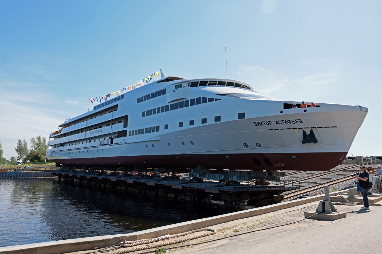 Пассажирский теплоход класса «река-море» проекта А45‑90.2 «Виктор Астафьев» спущен на воду в 2024, но так до конца и не достроен
