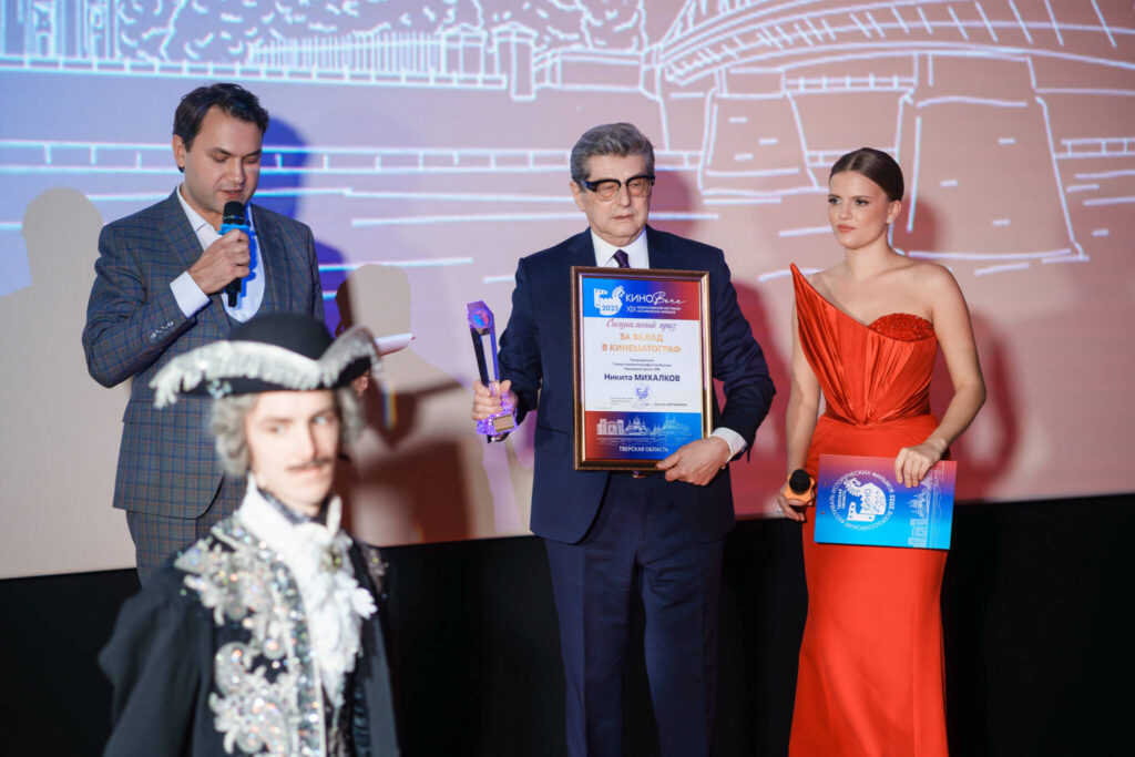 Приз «За вклад в отечественный кинематограф» — Председатель Союза кинематографистов России, актер, режиссер, сценарист, народный артист РФ — Никита Михалков;