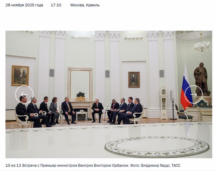 28 ноября премьер-министр Венгрии Виктор Орбан посетил Москву и встретился с президентом России Владимиром Путиным. Перед посадкой в самолёт Орбан заявил журналистам в Будапеште, что едет обеспечивать энергетическую стабильность для своей страны, а также обмолвился, что обсуждения "украинского вопроса" едва ли удастся избежать. Однако отсутствие в составе делегации министра энергетики и присутствие министра иностранных дел намекает, что обсуждение урегулирования конфликта на Украине стояло во главе угла.