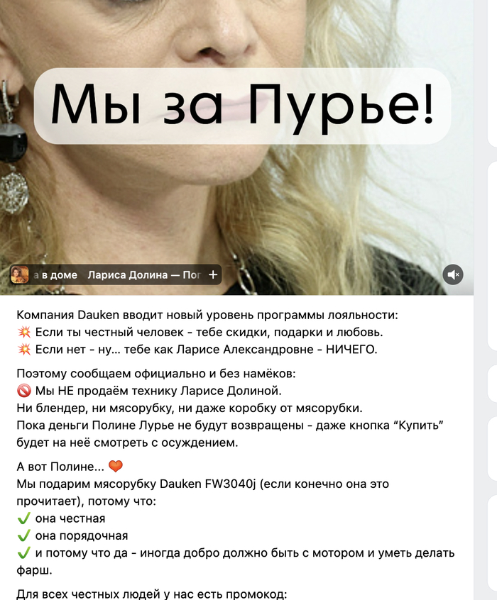 Пост компании Dauken, которая ввела свою «программу лояльности» с ироничным подтекстом