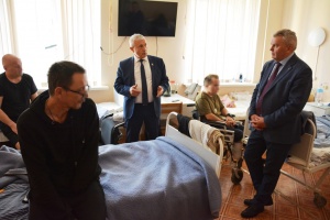 Сначала Уполномоченный обошел палаты, побеседовал с военнослужащими, поблагодарил их за ратный труд, проинформировал о мерах поддержки, предоставляемых участникам СВО в нашем крае, пожелал всем присутствующим крепкого здоровья и скорейшего восстановления.