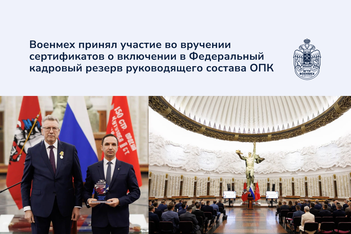 21 ноября 2025 года в Зале Славы Центрального музея Великой Отечественной войны 1941-1945 гг. состоялась торжественная церемония вручения сертификатов о включении в Федеральный кадровый резерв руководящего состава оборонно-промышленного комплекса, подписанных Первым заместителем Председателя Правительства РФ Денисом Валентиновичем Мантуровым.