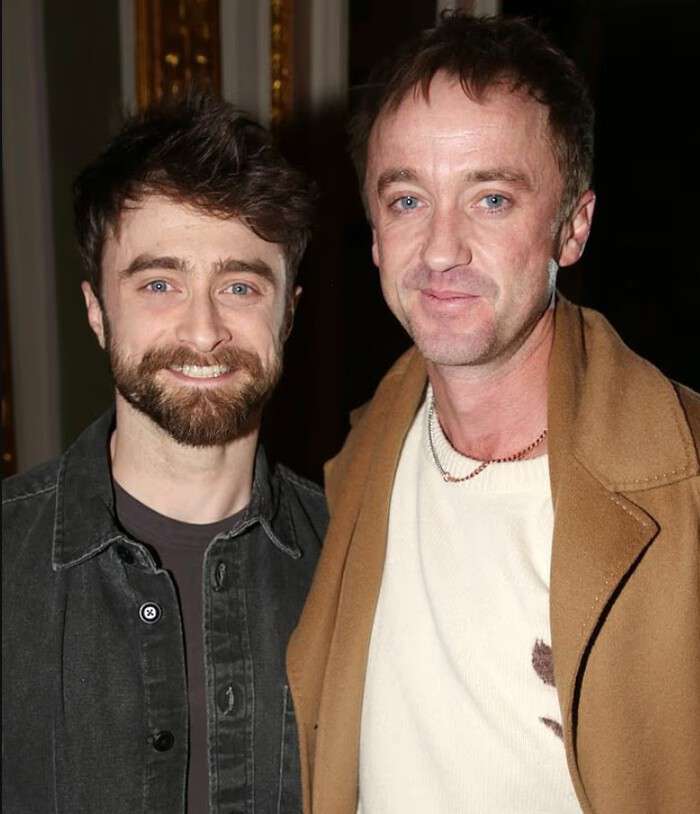 Британский актер Том Фелтон переживает новую волну популярности. В прошлом месяце он вернулся к роли уже повзрослевшего Драко Малфоя в бродвейской постановке «Гарри Поттер и Проклятое дитя». Актер вызвал шквал эмоций у фанатов франшизы. И вот теперь Фелтон впервые за долгие годы стал одним из главных героев светской хроники. Накануне Том снова оказался в центре внимания, причем не он один. Вчера вечером звезда «Гарри Поттера» посетил закрытый показ фильма, где он встретился с Гарри Поттером, то есть Дэниелом Рэдклиффом. Заклятые экранные враги в реальной жизни поддерживают теплые отношения. Фотографы засняли звезд легендарной франшизы, которые были рады видеть друг друга. Особенно сияющим выглядел Рэдклифф. dailymail.co.uk До этого Драко и Гарри в последний раз были запечатлены на одном фото аж 14 лет назад. Тогда актеров «щелкнули» на премьере финальной части поттерианы «Гарри Поттер и Дары Смерти: Часть 2». Фанаты были счастливы видеть звезд, воплотивших один из самых ярких вражеских дуэтов в кино. Также многие затронули в комментариях еще и их позиции относительно «отменной» Роулинг. Напомним, Дэн высказался против Джоан, Том же воздержался от критики, лишь отметив, что благодарен ей за все.