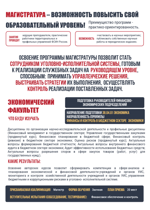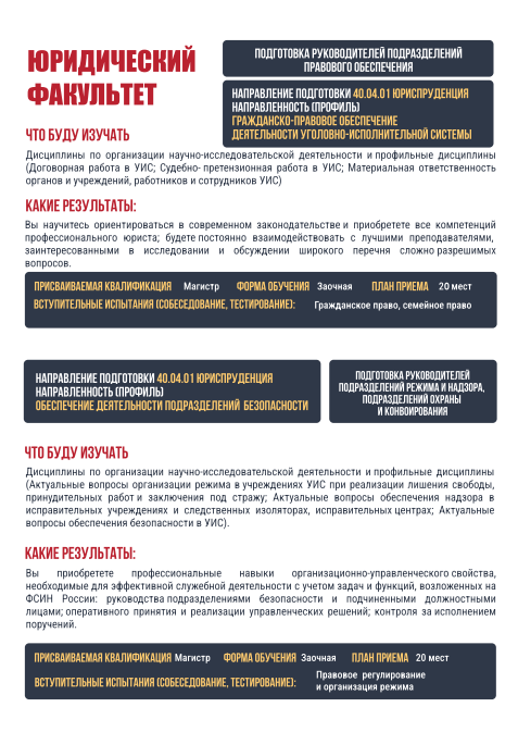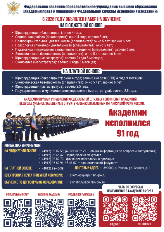 Академия ФСИН России объявляет направления подготовки (специальности) на которые планируется осуществить прием в 2026 году