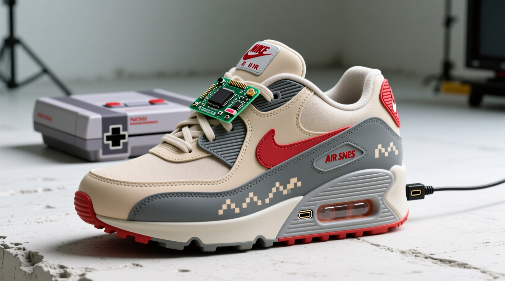 К 35-летнему юбилею игровой приставки Super Nintendo известный дизайнер Г. Бонзанини презентовал необычный проект — уникальные кроссовки Nike Air с индексом Max 90, преобразованные в полнофункциональную игровую ретро-систему. Модель AIR SNES, выполненная в сдержанной цветовой гамме, характерной для оригинальной приставки, скрывает в язычке суперкомпактный компьютер Raspberry Pi и аккумуляторную батарею. Одноплатный компьютер функционирует под управлением эмулятора RetroPie, что позволяет запускать классические 16-битные игры для Super Nintendo.