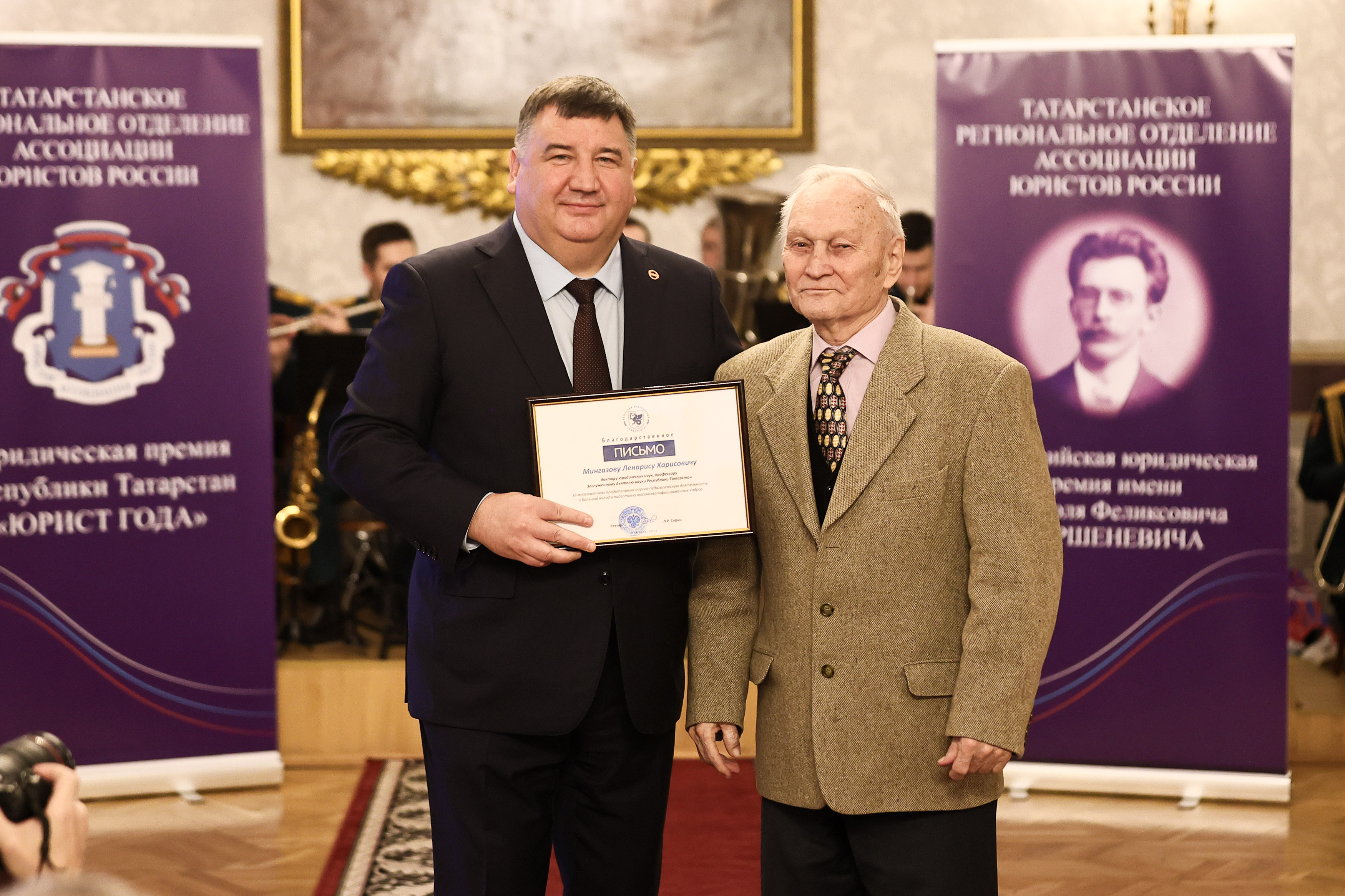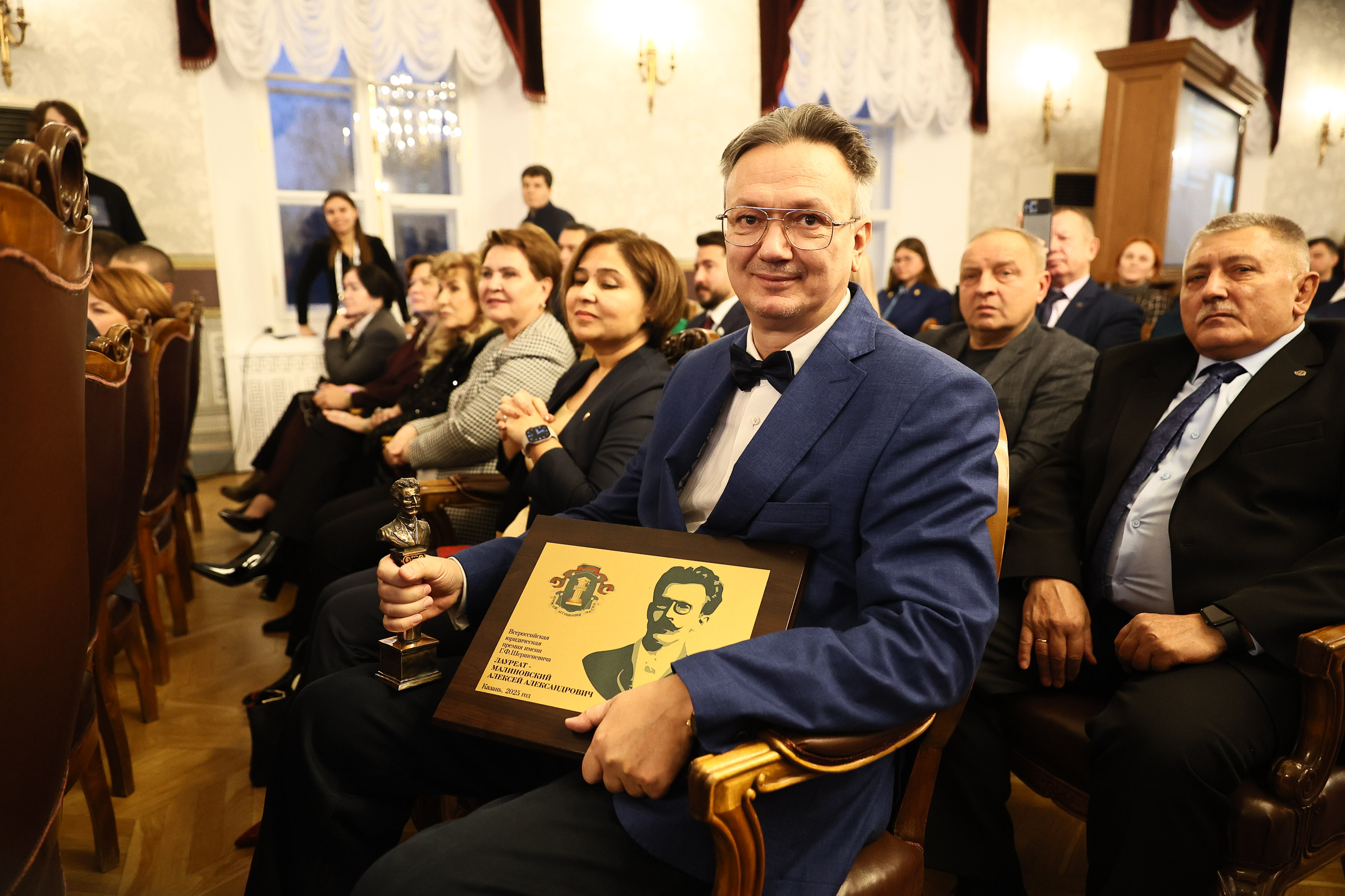 Всероссийская юридическая премия имени Габриэля Феликсовича Шершеневича за особые заслуги в развитии юриспруденции Российской Федерации в этом году была присуждена двум лауреатам: заведующему кафедрой теории права и сравнительного правоведения МГИМО Алексею Малиновскому и советнику председателя РОМО «Союз Десантников» по РТ Сергею Алексееву.