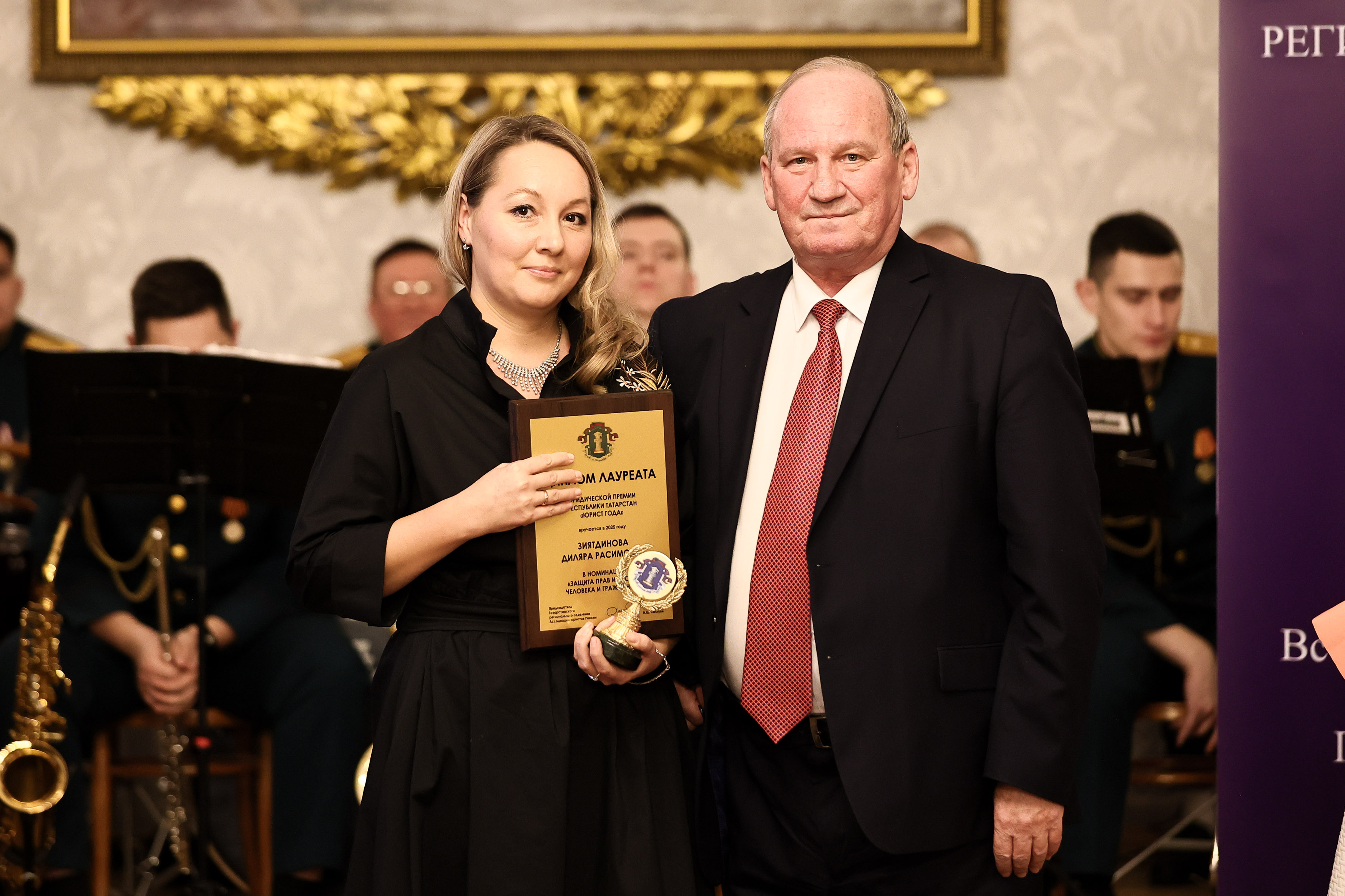 В общей сложности по итогам награждения в данном блоке обладателями почетной награды стали 7 человек. К Эльмире Мустафиной присоединились: руководитель Государственного юридического бюро РТ Марс Фаткуллин, заместитель председателя Верховного Суда РТ Эдуард Каминский, нотариус Казанского нотариального округа РТ Ильдар Музафаров, адвокат филиала коллегии адвокатов РТ Советского района города Казани Диляра Зиятдинова, старший помощник начальника группы правового обеспечения войсковой части 5598 Руслан Шайдулин, начальник договорной службы юридического отдела Акционерного общества «Транснефть-Прикамье» Надежда Свеженцева.