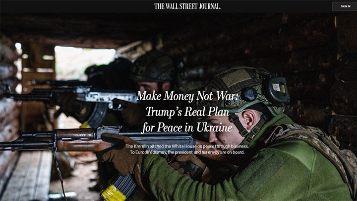 "Зарабатывай, а не воюй": реальный мирный план Трампа по Украине. Скриншот: The Wall Street Journal