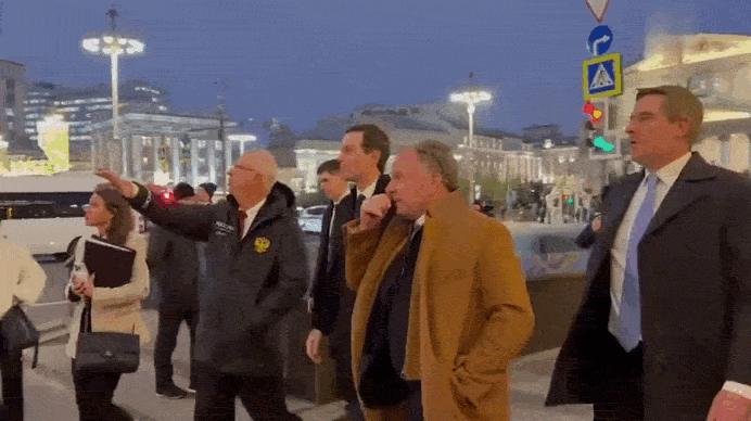 Перед встречей с Владимиром Путиным Стив Уиткофф и Джаред Кушнер прогулялись по центру Москвы. Видео: ТГ-канал @politburodc