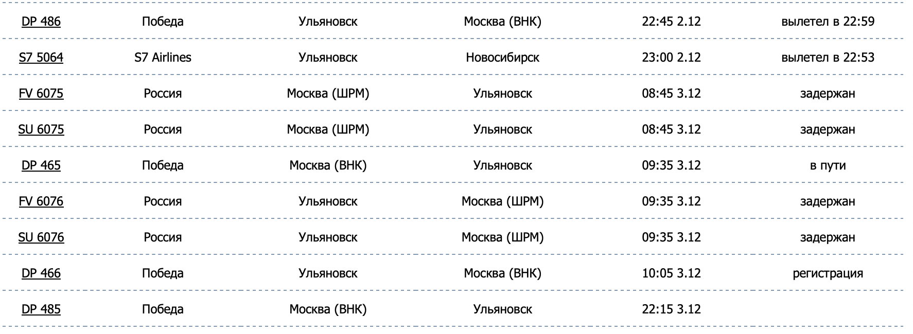 Онлайн табло аэропорта в Баратаевке
