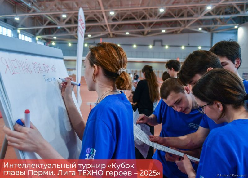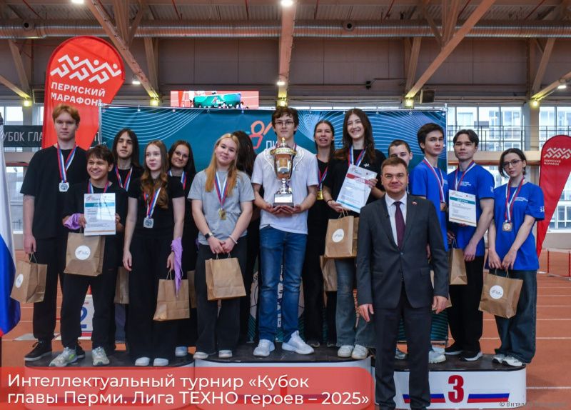 В спортивном манеже «Спартак» состоялся финал городского интеллектуального турнира «Кубок главы Перми. Лига техногероев» по математике, физике и информатике. В заключительном этапе встретились семь команд школ Перми, которые успешно прошли отбор и показали лучшие результаты среди 46 команд десятиклассников.