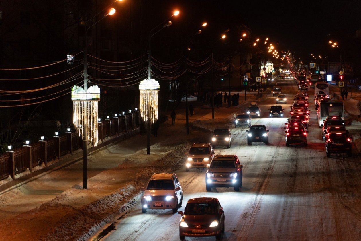 Праздничное оформление Южно-Сахалинска. Фото: пресс-служба правительства Сахалинской области.