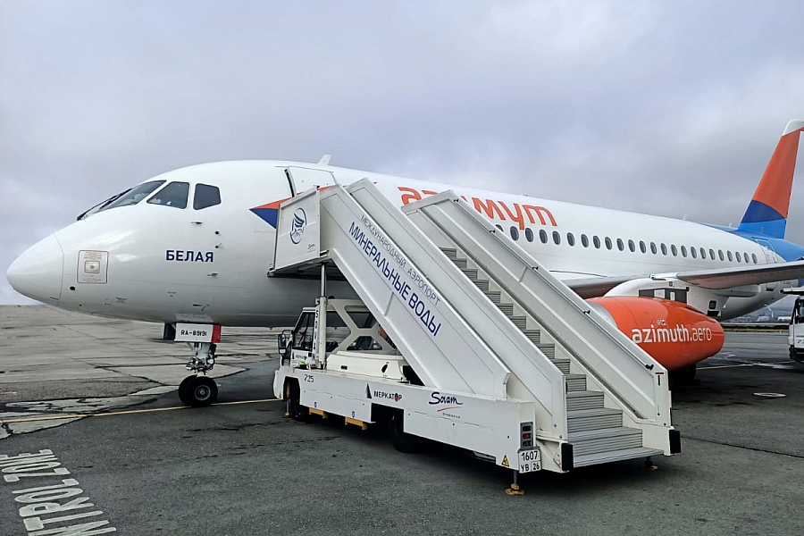 SSJ 100 авиакомпании "Азимут" в аэропорту Минеральные Воды