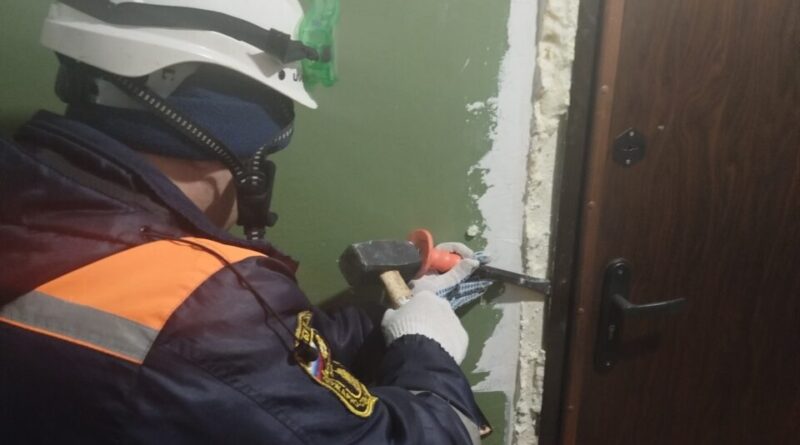 В присутствии полицейских с помощью слесарного инструмента спасатели открыли две входных двери квартиры, в которой находилась пожилая женщина, нуждающаяся в помощи.