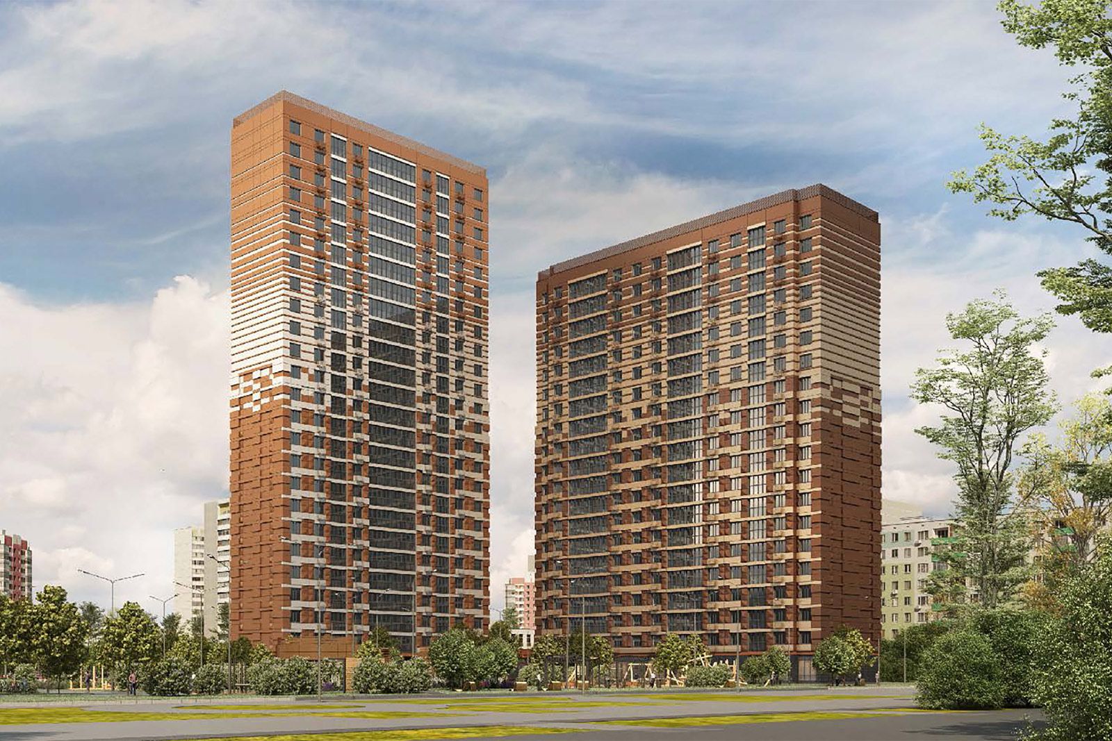 «Для отделки фасадов двух секций используют теплую гамму оттенков — медно-коричневый, светлую охру, золотисто-бежевый и другие цвета, которые образуют на стенах градиентный узор. Такой прием в оформлении нового жилого комплекса позволит создать запоминающийся уникальный облик», — уточнил главный архитектор Москвы, первый заместитель председателя Комитета по архитектуре и градостроительству (Москомархитектура) Сергей Кузнецов.