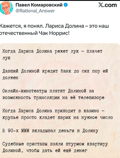 «Ларисе Долиной присвоено звание Народной аферистки России».