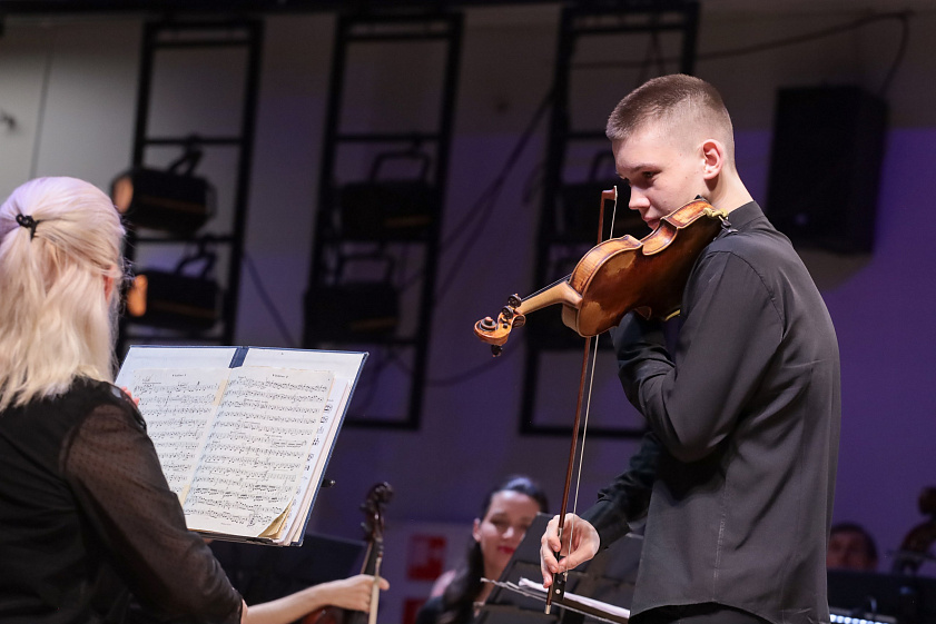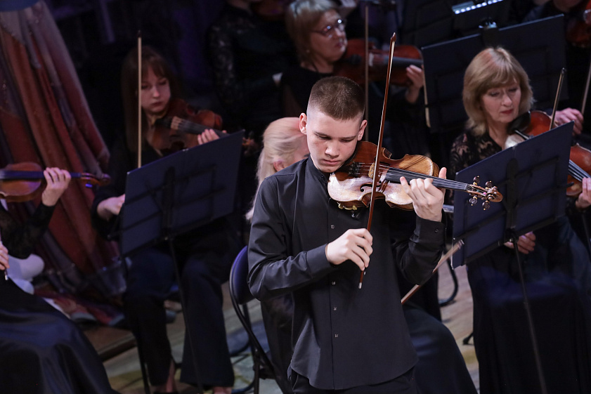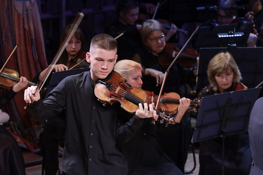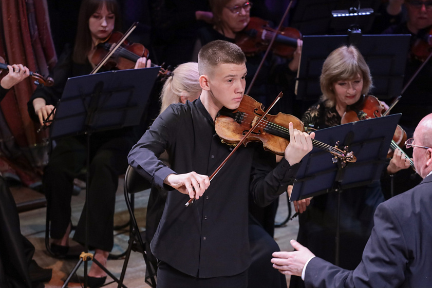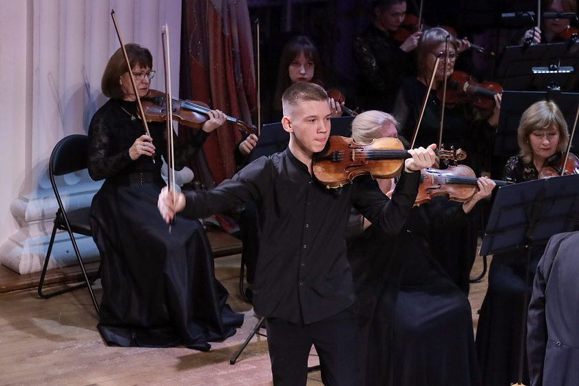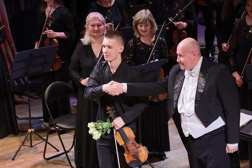Завершилось первое отделение концерта великолепным финалом концерта для скрипки с оркестром, где сольную партию исполнил Георгий Хан. Это было поистине виртуозное исполнение, когда скрипка вступает со слушателями в диалог, спорит, отстаивает свои убеждения. Продолжительные аплодисменты, которые сорвал молодой музыкант, — подтверждение тому, что музыкальный гений композитора позволяет достучаться до всех и каждого.