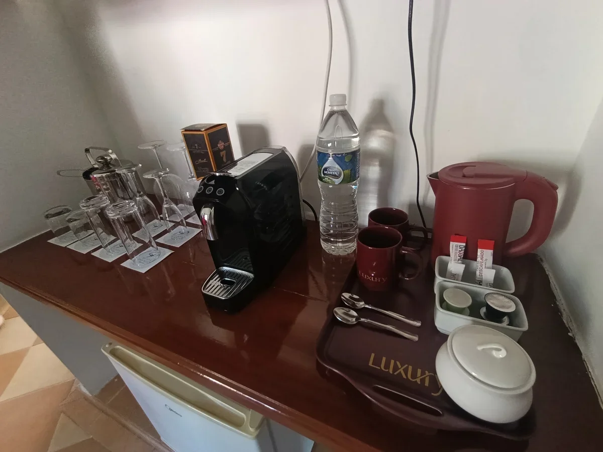 - Важно: как правило, в чайниках и кофеварках просто греют воду. Капсулы, кофе, чайные пакетики, порционный сахар – все это отсутствует (исключение – отель Playa Pesquero 5*, но там капсулы тоже есть не всегда).
