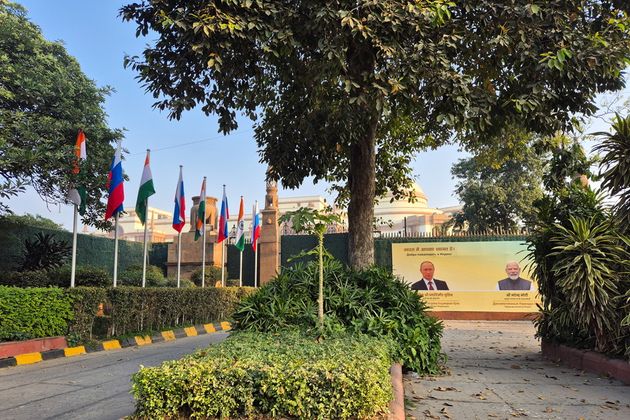 По словам очевидцев, на каких-то плакатах Путин изображен один, на больших баннерах — вместе с Моди. Кроме того, фотографии сопровождаются подписями на русском и хинди. Власти города также украсили улицы флагами двух стран.