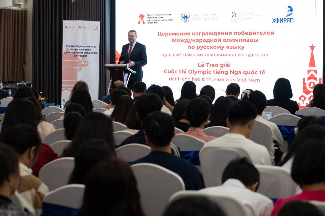 «Освоение языка — это не просто работа с грамматикой. Это открытие новой культуры, новых возможностей и нового взгляда на мир. Вы — молодое поколение, которое формирует будущее отношений между нашими странами. Ваш интерес к русскому языку — это вклад в укрепление взаимопонимания, диалога культур и многолетней дружбы России и Вьетнама. От всей души поздравляю всех финалистов. Пусть эта олимпиада станет для вас началом большого пути в мире знаний и открытий».