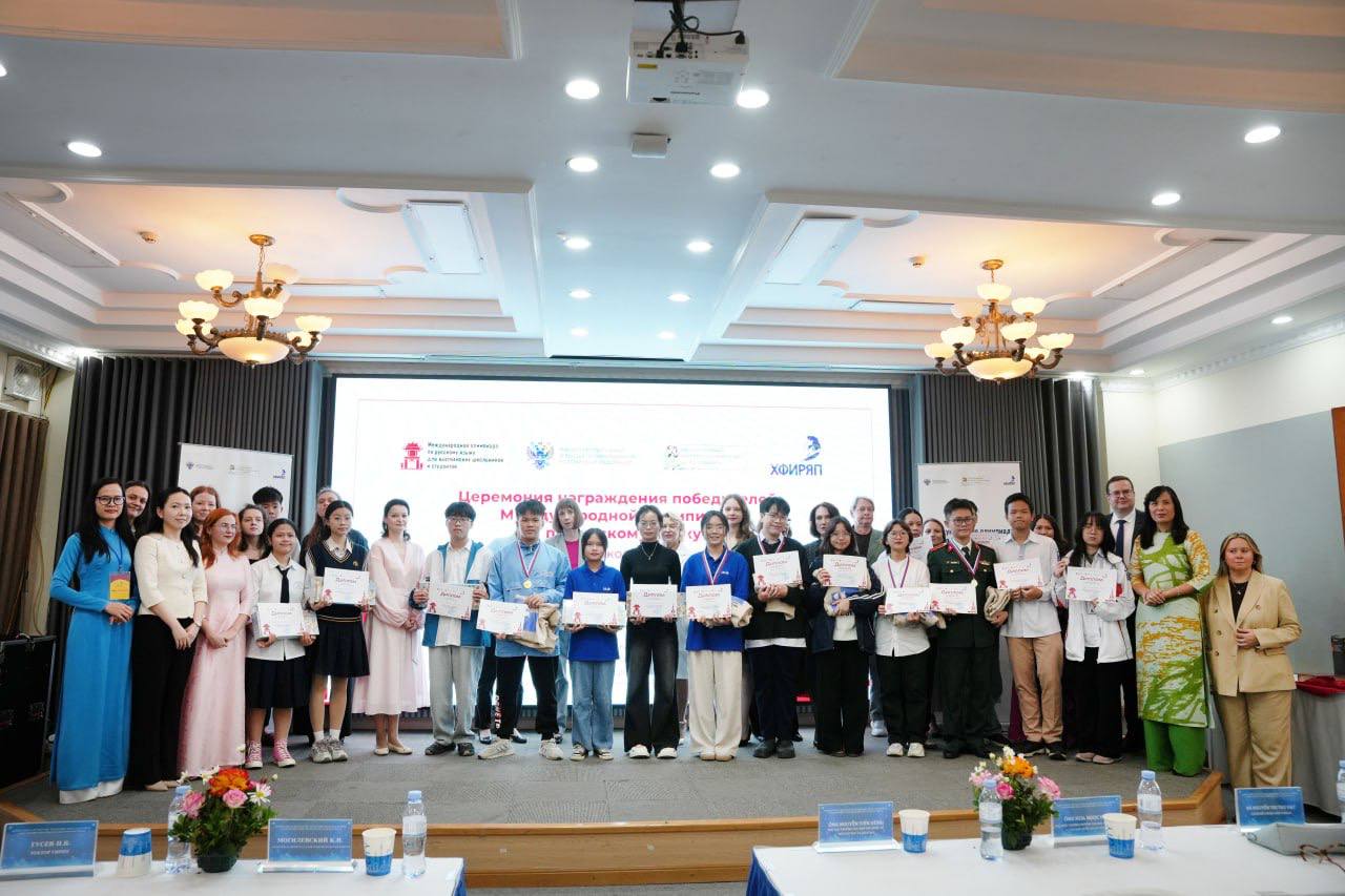 На церемонии закрытия олимпиады ректор Института Пушкина Никита Гусев выразил благодарность руководству и сотрудникам Ханойского филиала Института русского языка имени А.С. Пушкина за поддержку и продвижение русского языка и русской культуры во Вьетнаме, а также поблагодарил Ханойский государственный университет за сотрудничество и теплый прием участников олимпиады в стенах вуза. Ректор рассказал, что выбор победителей был непростой, каждый финалист олимпиады достоин победы, и пожелал всем успехов в изучении русского языка. А также отметил высокий уровень подготовки вьетнамских преподавателей-русистов и подчеркнул, что Институт Пушкина будет и дальше оказывать им методическую поддержку.