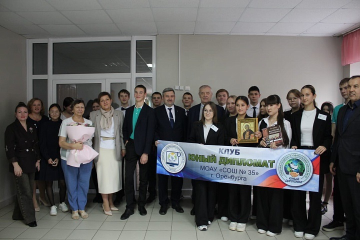 Состоялась встреча Президента ДОД «Дипломаты будущего» с членами клуба «Юный дипломат» в стенах СОШ № 35. Членам Клуба в торжественной обстановке были вручены икона Благоверного великого князя Александра Невского, освящённая в Александро-Невской лавре в г. Санкт-Петербурге, и подборка книг для пополнения библиотеки дипломатической тематики.