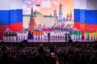 В фееричном концерте приняли участие Государственный академический русский народный хор имени М. Е. Пятницкого, Государственный академический орденов Дружбы народов и святого благоверного великого князя Димитрия Донского 1-й степени Кубанский казачий хор, артисты Кремлёвского балета, вокальная группа «VIVA», Сергей Войтенко и группа «Баян Микс», театр песни «Талисман», хореографический ансамбль «Аквамарин», фолк-группа CLEVER FOLK и русская компания современного танца Александра Могилева «Это».