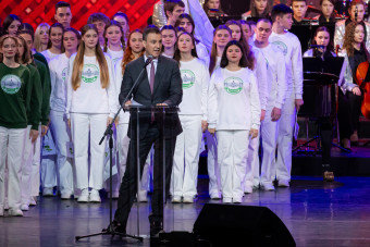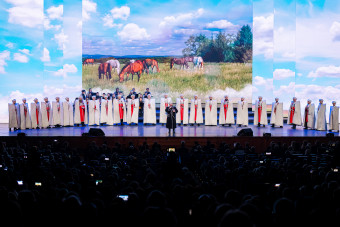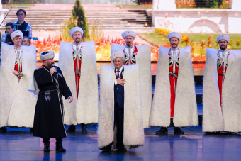 Заключительной частью праздничного вечера стала песня «Счастья тебе, земля моя», исполненная заслуженным артистом России Аскаром Абдразаковым, певицей Елизаветой Долженковой, детским театром песни «Талисман» и студенческими коллективами академии.