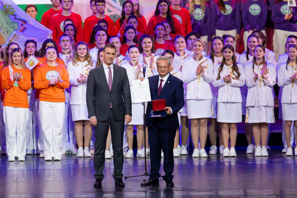 Особым моментом вечера стало вручение академии ордена «За доблестный труд», учреждённого Президентом Российской Федерации Владимиром Путиным. Церемонию награждения провёл заместитель председателя Правительства РФ Дмитрий Патрушев, зачитал указ Президента и вручил награду ректору университета, академику РАН Владимиру Трухачёву.