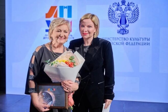 Фото из архива ДШИ им. М.И. Глинки. На фото: директор школы, з.р.к. Людмила Беганская и министр культуры РФ Ольга Любимова