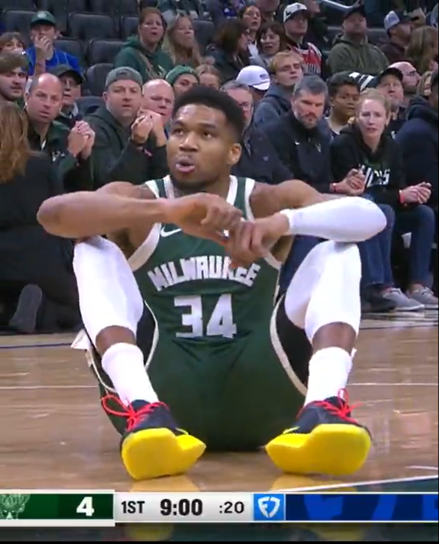После одной из атак в начале первой четверти Яннис возвращался в защиту, но, находясь в штрафной соперника, вскрикнул, упав на паркет, и схватился за икроножную мышцу. Яннис выругался на греческом и покинул паркет хромая.
