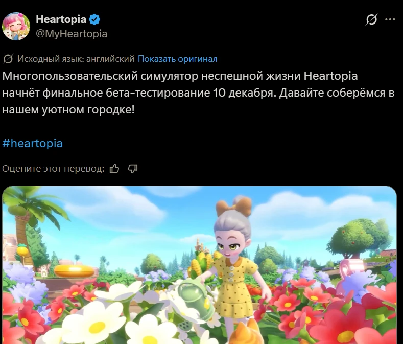 Разработчики Heartopia опубликовали свежий пост в X. В нём они сообщили, что финальный бета-тест пройдёт 10-го декабря. Стоит ожидать, что в начале 2026 года состоится официальный релиз глобальной версии. Пока детали уточняются, но стоит ожидать, что поиграть сможет куда больше игроков на iOS, Android и PC.