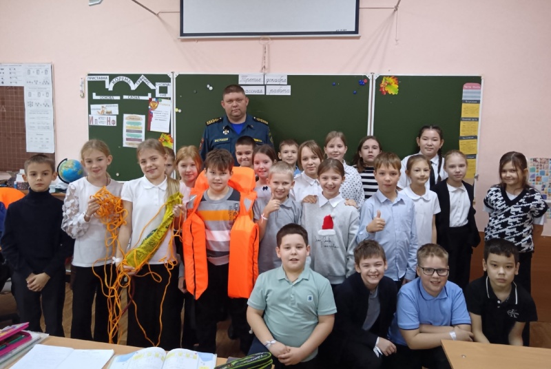 Руководитель Челябинского инспекторского отделения Артем Назайкин провел с подрастающим поколением обучающее занятие по правилам поведения на водных объектах. Он рассказал ребятам, чем опасны наши реки и озера в период становления льда, а также напомнил школьникам алгоритм действий в нештатной ситуации.